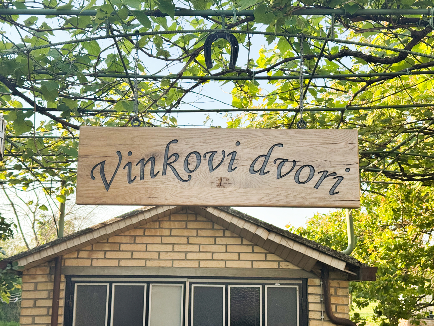 Natpis za brajdu izrađen od starog hrasta. Rubovi zaobljeni a tekst ugraviran. Završna obrada Sadolin Yacht